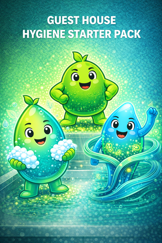 The Guest House Hygiene Starter Pack is designed to simplify hygiene management in short-term accommodation and hospitality environments. It combines three high-rotation essentials that guests use daily, ensuring consistent cleanliness, gentle skin care, and professional presentation throughout your property. This bundle helps maintain excellent hygiene standards while reducing the need for multiple supplier purchases. All products are suitable for frequent use, eco-conscious operations, and septic-friendly environments. Ideal for: • Guest houses, lodges, and B&Bs • Airbnb and short-term rental properties • Boutique hotels and holiday homes • Staff and guest bathrooms • Daily cleaning of floors, bathrooms, kitchens, and surfaces
